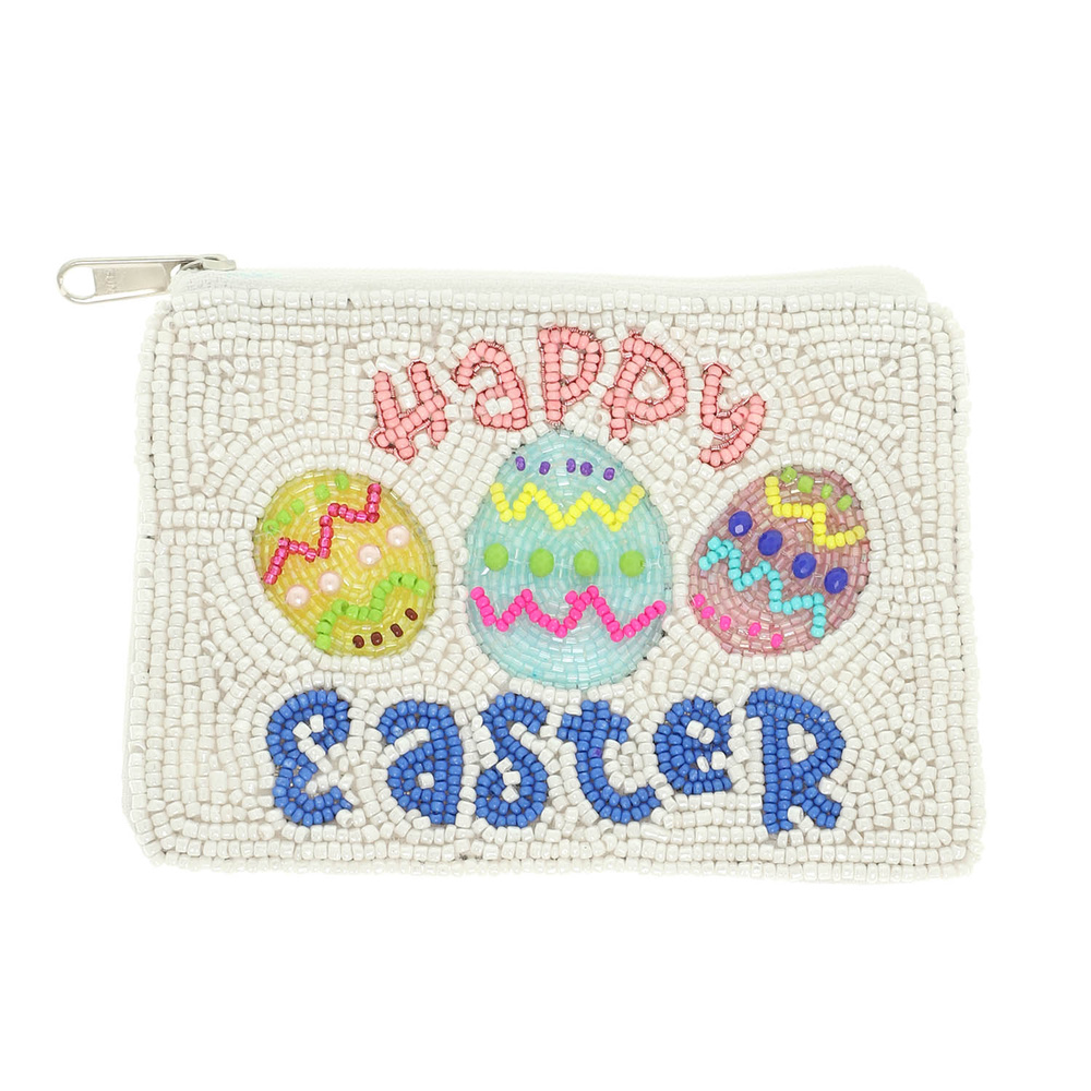 HAPPY EASTER DECORATED EGG TRIO SEED BEADED COIN BAG AND PEARL ACCENT