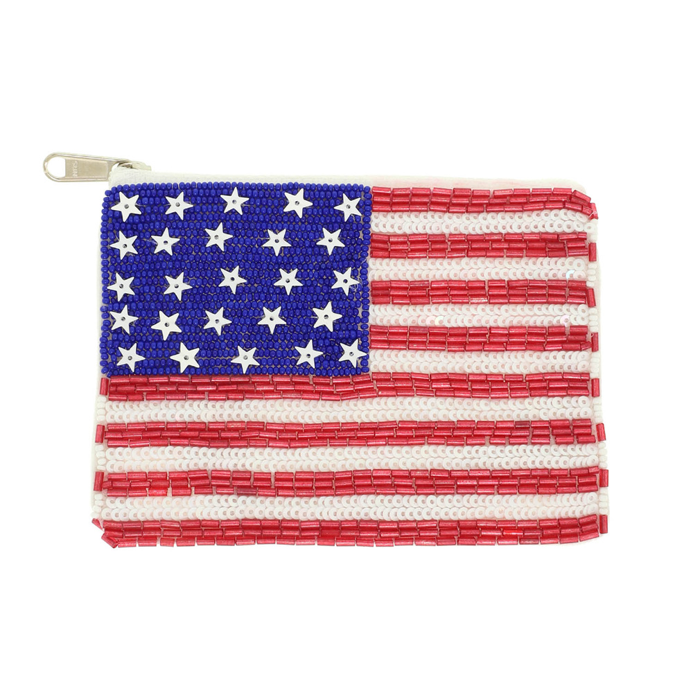 AMERICAN FLAG STARS STRIPES SEED BEADED AND SEQUIN COIN BAG