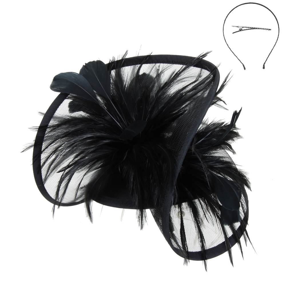 Mesh Feather Fascinator With Clip Headband