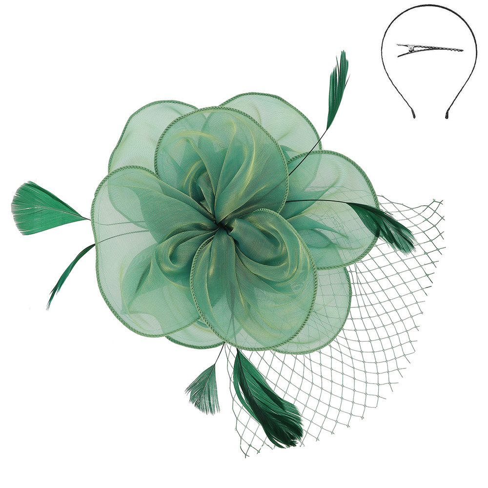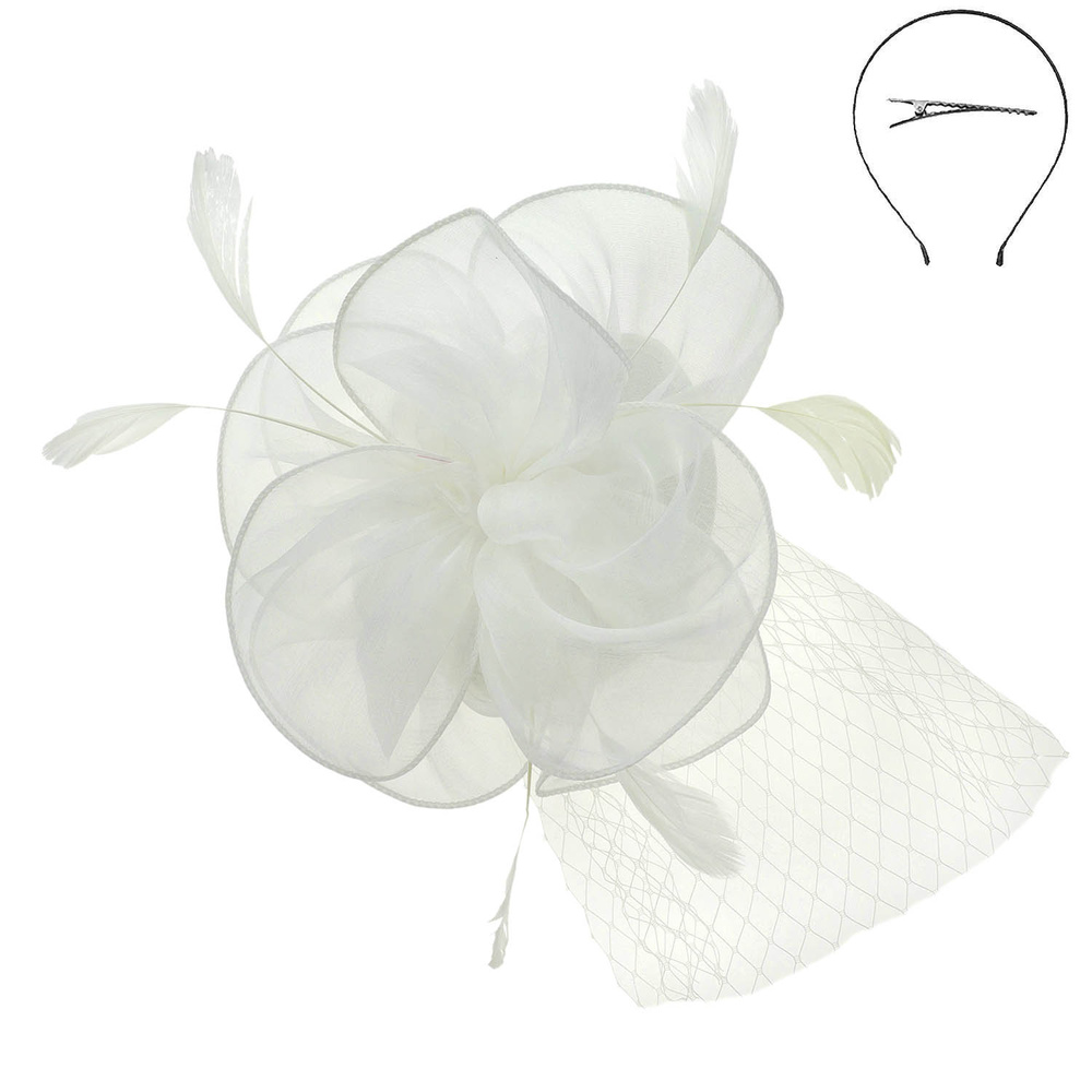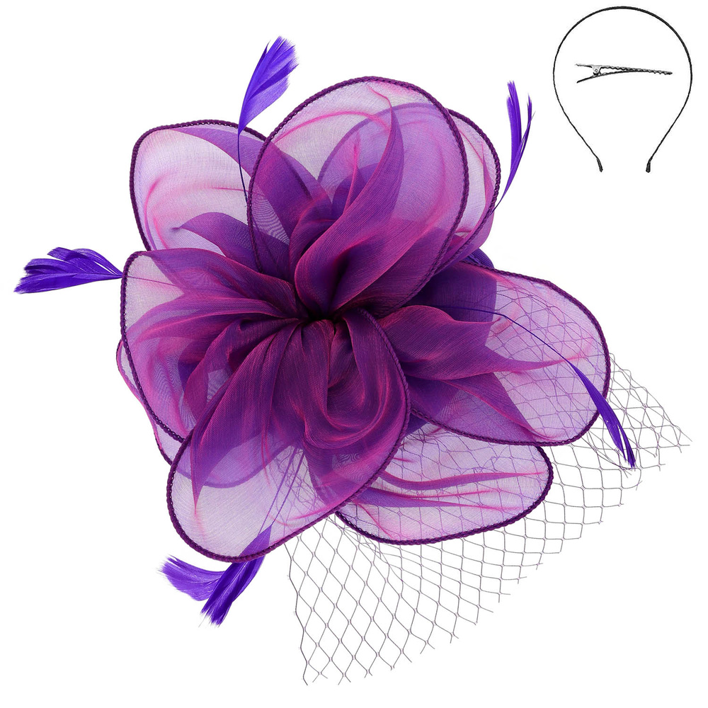 WOMEN'S KENTUCKY DERBY TILT MESH FLOWER FEATHERS FASCINATOR WITH DUAL FUNCTION AS CLIP AND HEADBAND