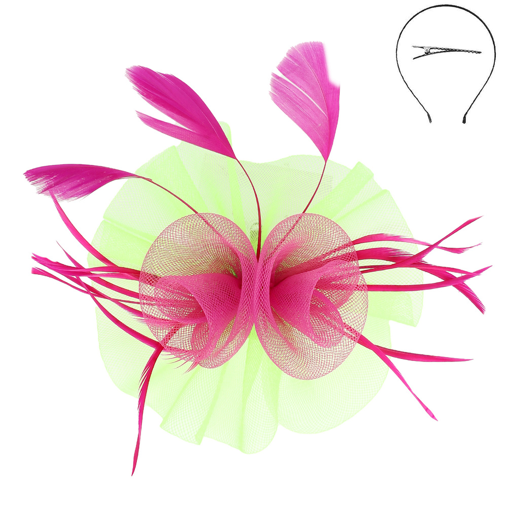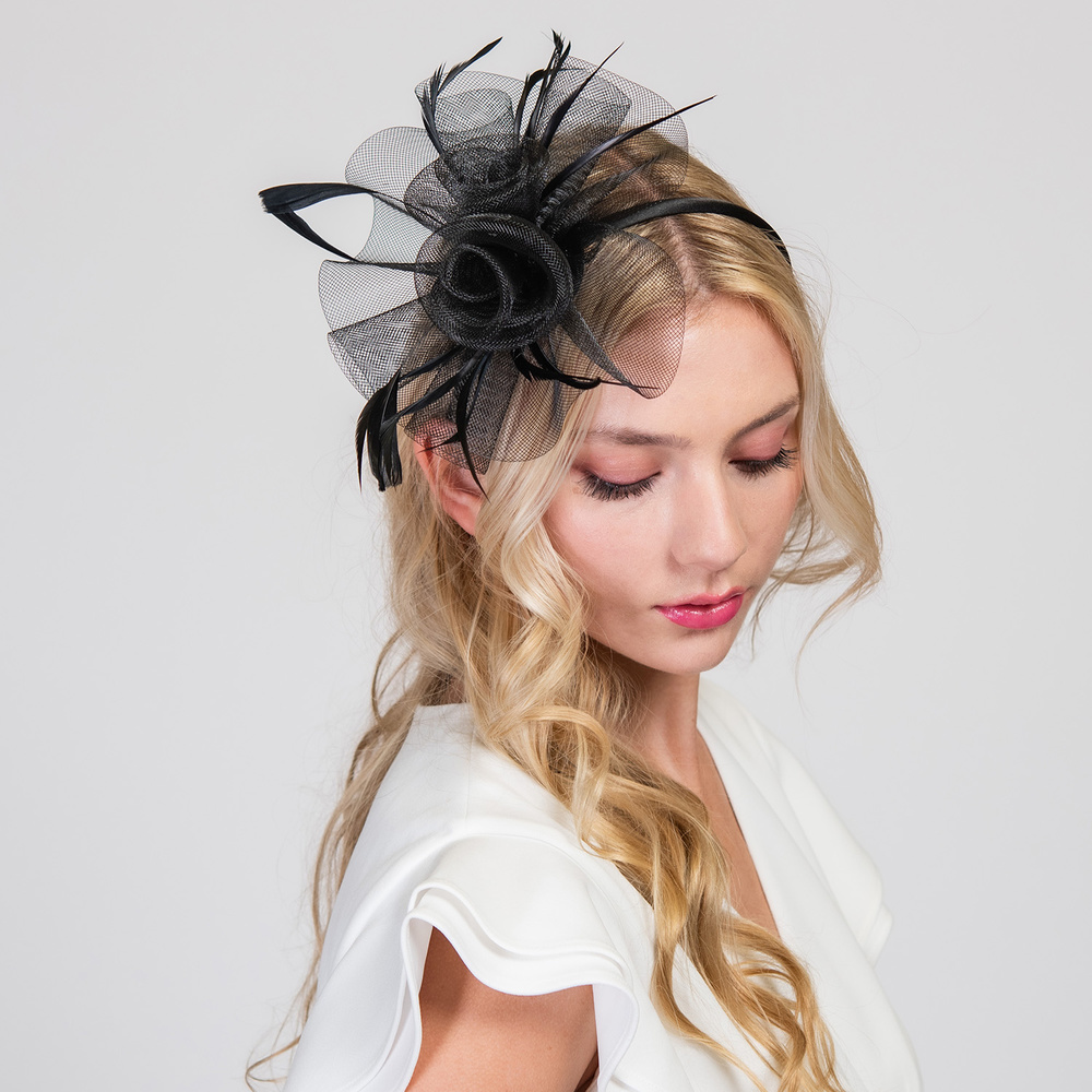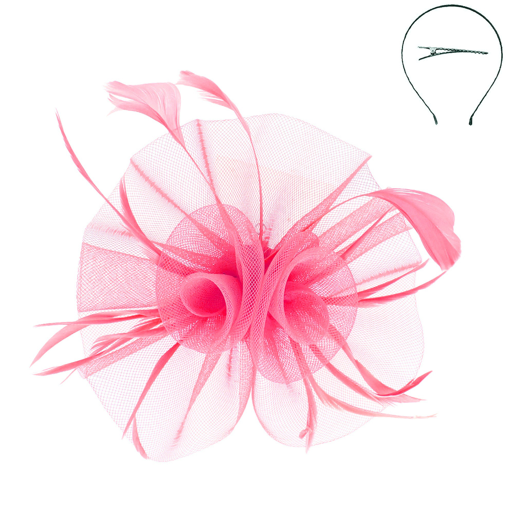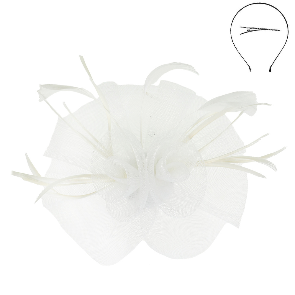 FLORAL FEATHERED SHEER MESH FASCINATOR WITH CLIP AND HEADBAND