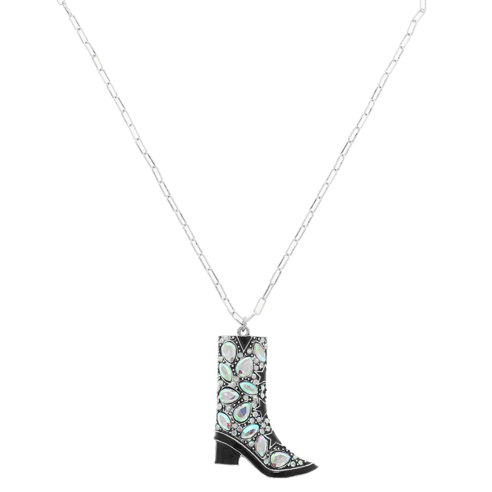 WESTERN COWBOY BOOT PENDANT NECKLACE WITH CRYSTAL ACCENTS