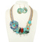 CROCHETED FLOWER AND BEAD CHARM NECKLACE EARRING SET