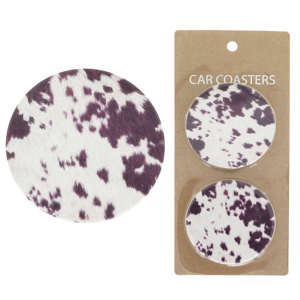 2-PIECE COWHIDE PRINT CORK BASE CERAMIC ABSORBENT CUP HOLDER CAR COASTER SET