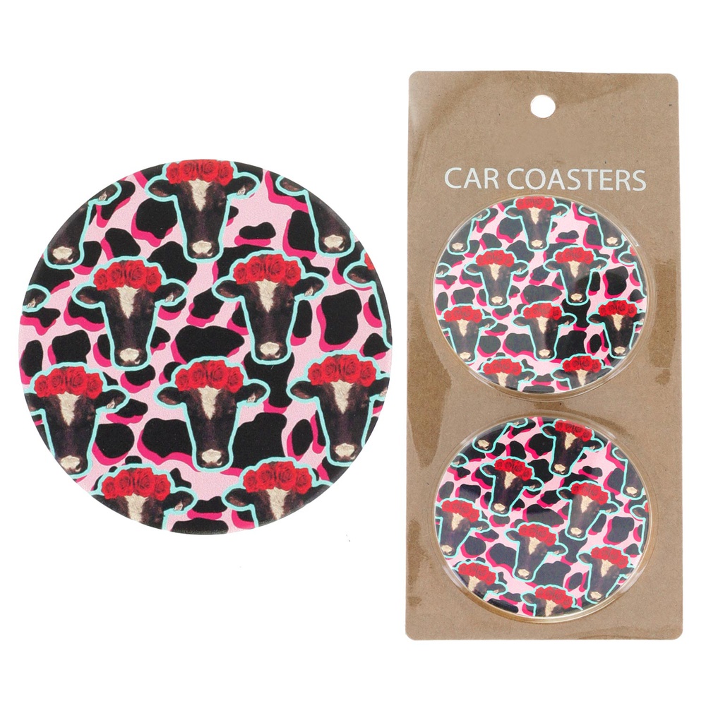 2-PIECE LEOPARD PRINT COW CORK BASE CERAMIC ABSORBENT CUP HOLDER CAR COASTER SET