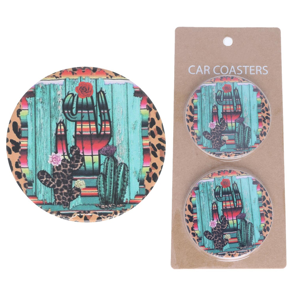 DESSERT BLOOMING CACTUS - 2-PIECE FARM LIFE THEMED CORK BASE CERAMIC ABSORBENT CAR COASTER SET
