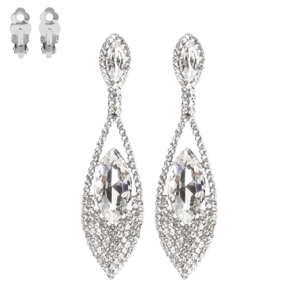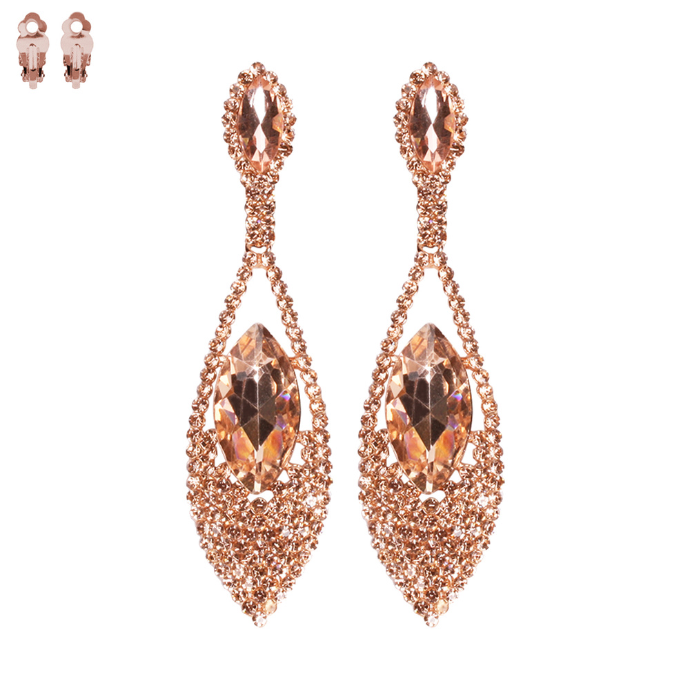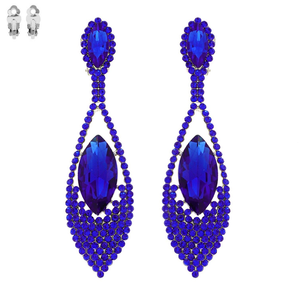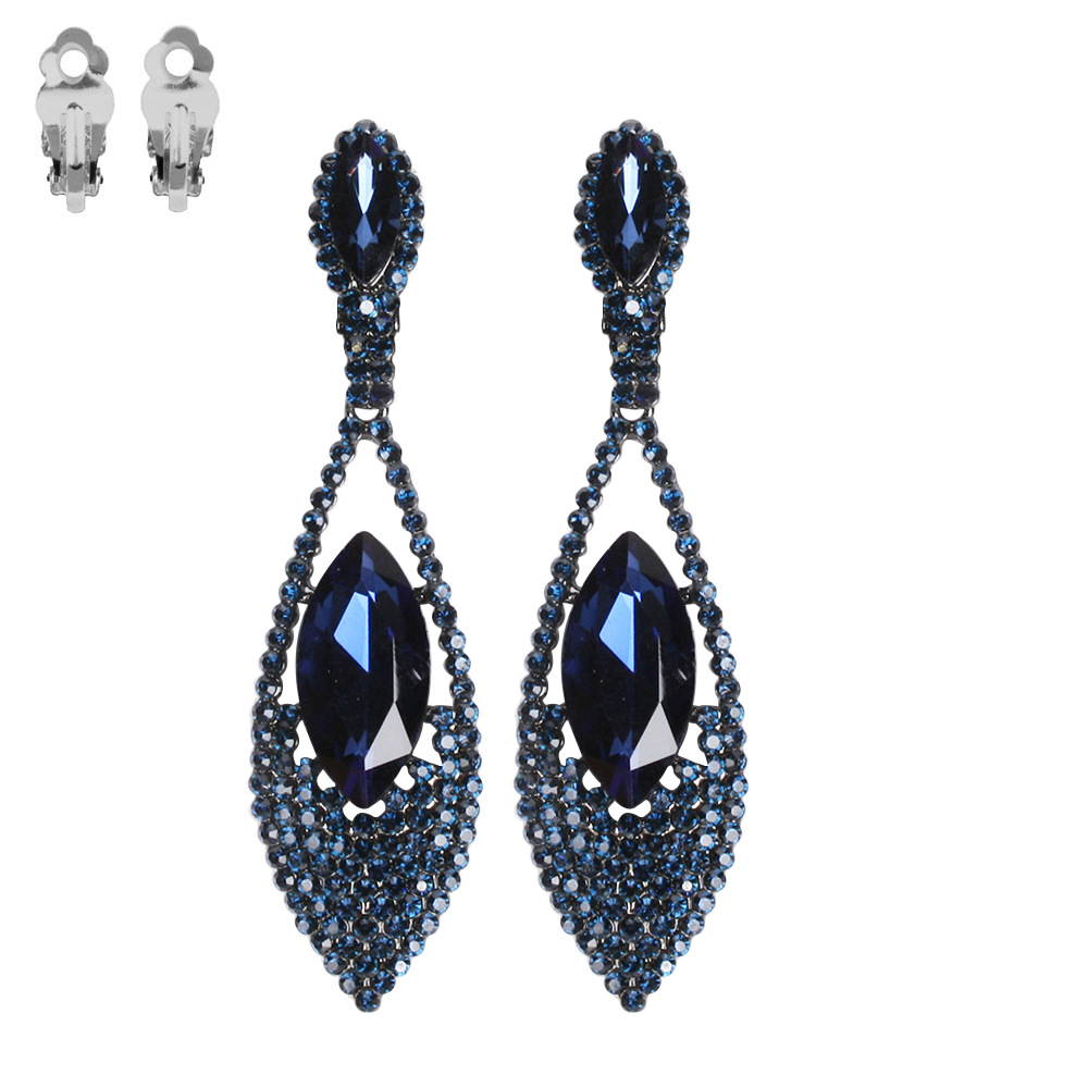 NAVY V SHAPE STONE EARRINGS W/CLIP