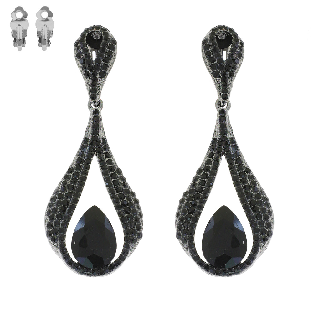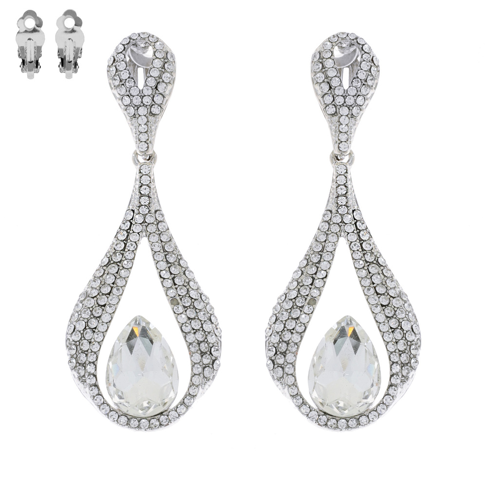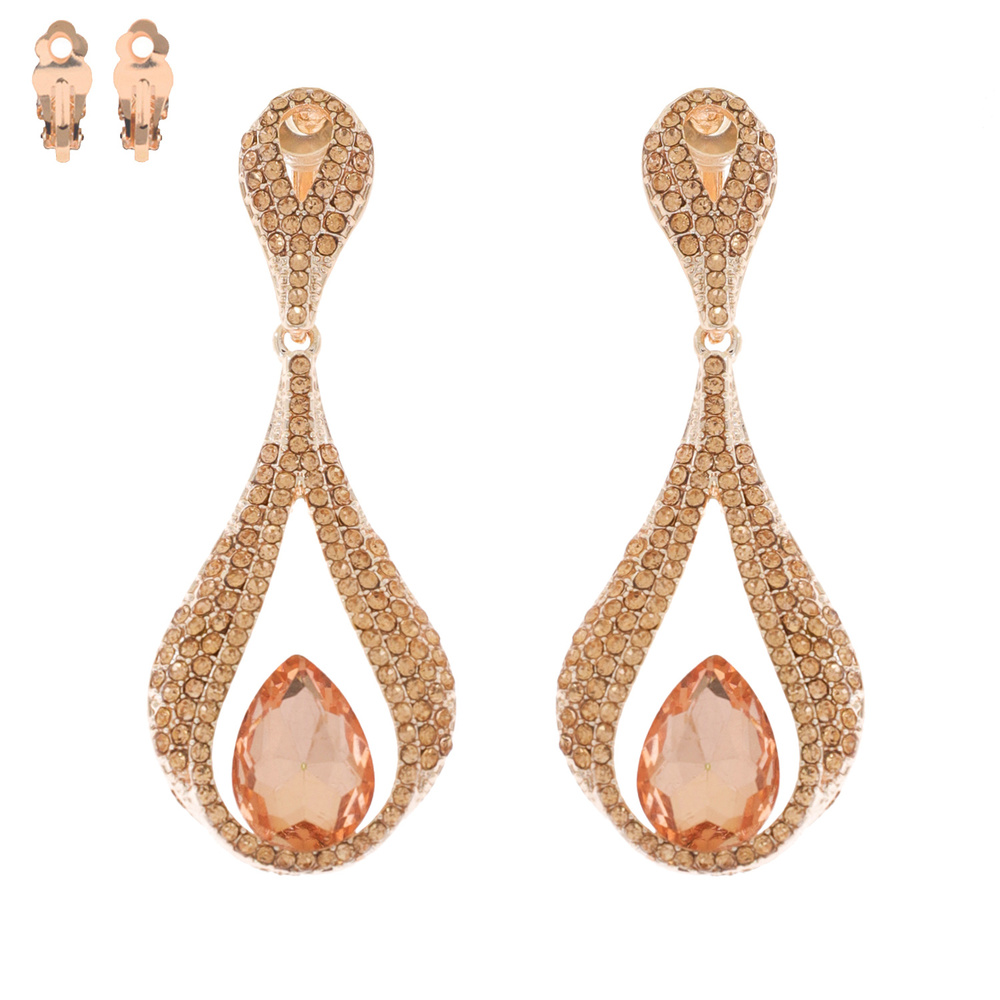 Dangly Teardrop Gem Metal Clip Earrings