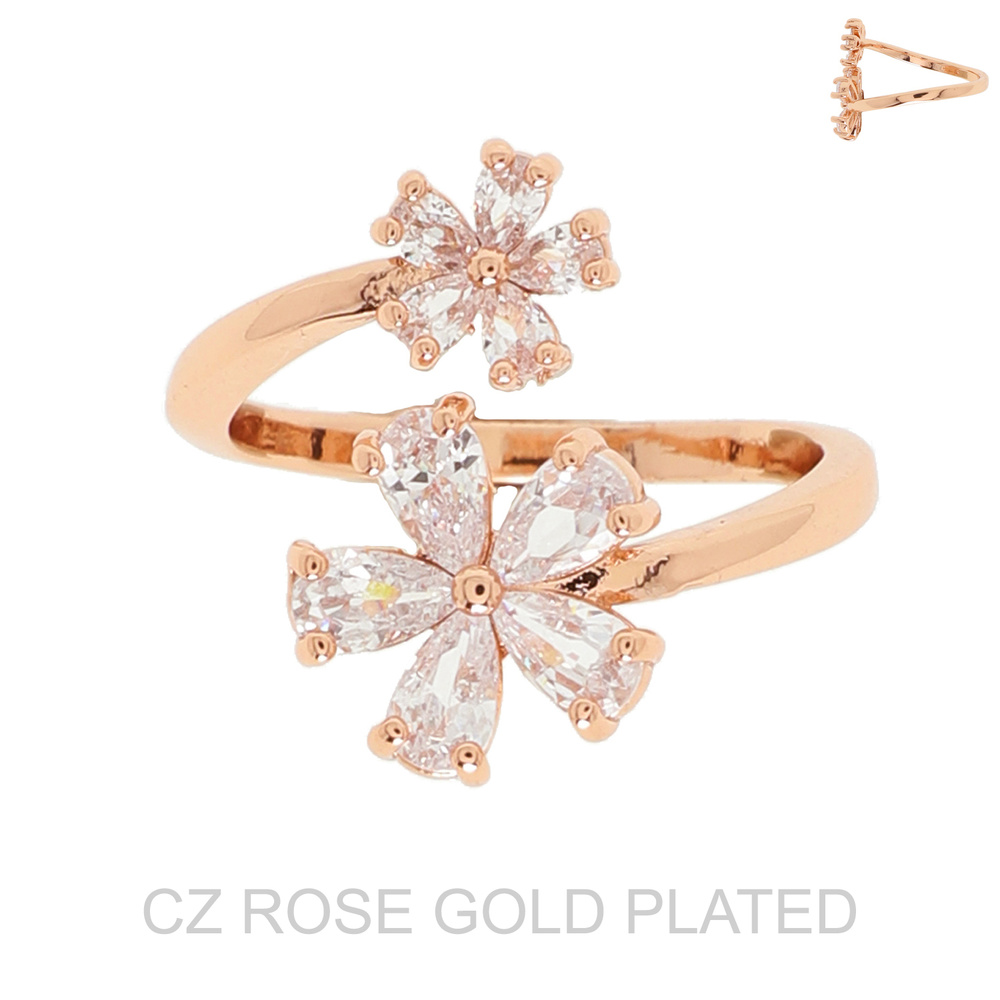 Floral Gold Plated Cz Adjustable Spiral Cuff Ring
